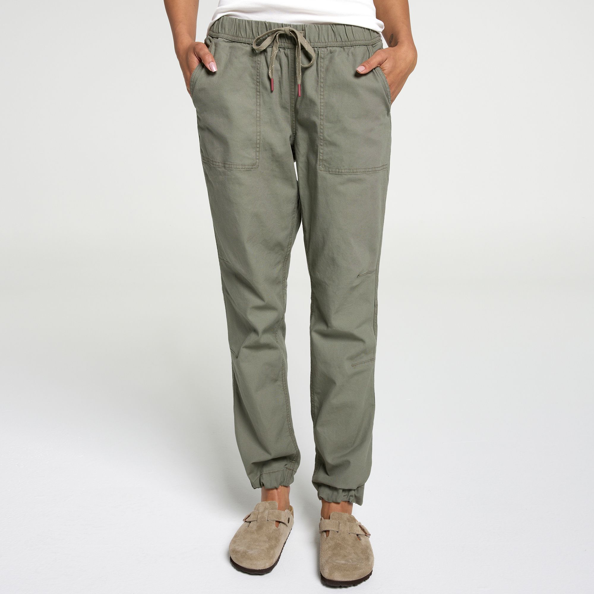Overall these are great pants. They are comfortable, easy to move around, bend over, etc. in. I've worn them for tasks like working outside digging and picking up potatoes as well as cleaning, painting, etc. in a room. The comfort can't be matched! I could wear them all day. I like the mid-weight material and the ability to cinch at both the waist and the ankles. My only complaint is that, for pants with elastic and a drawstring at the waist, they feel a little snug trying to pull up over my hips/bottom. It's like the proportions are off because there's plenty of room everywhere, but I would expect an easier slide on. Other than that they're great. I've washed and worn a number of times. They wash up well and seem like they're going to last. I liked them so much I bought a second pair after I had a chance to try them :)