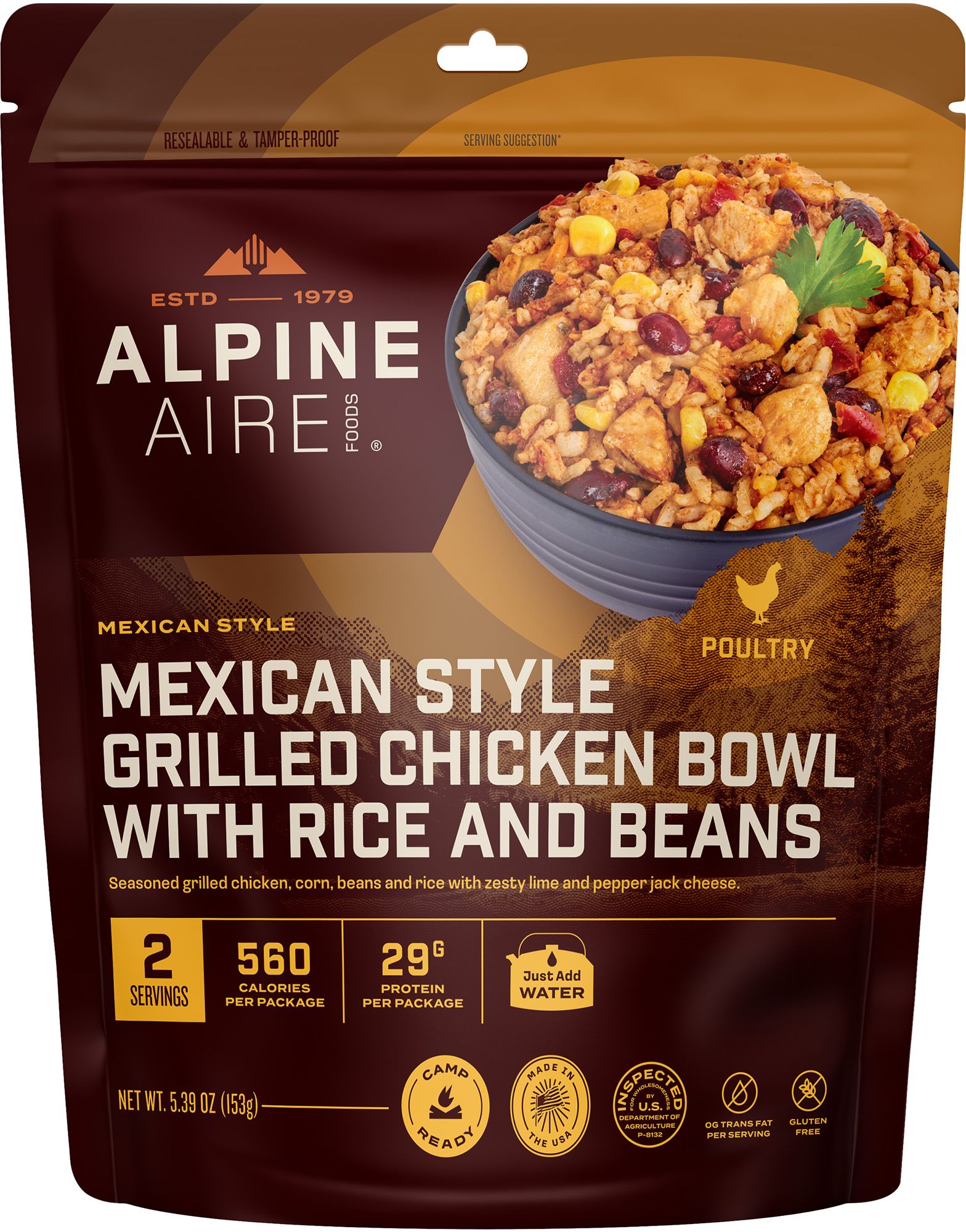 Made with seasoned grilled chicken, corn, beans, and rice with zesty lime and pepper jack cheese