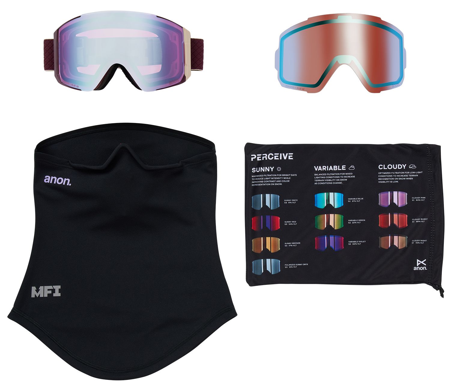 - Helmet compatible with bonus lens, MFI® face mask and microfiber goggle bag