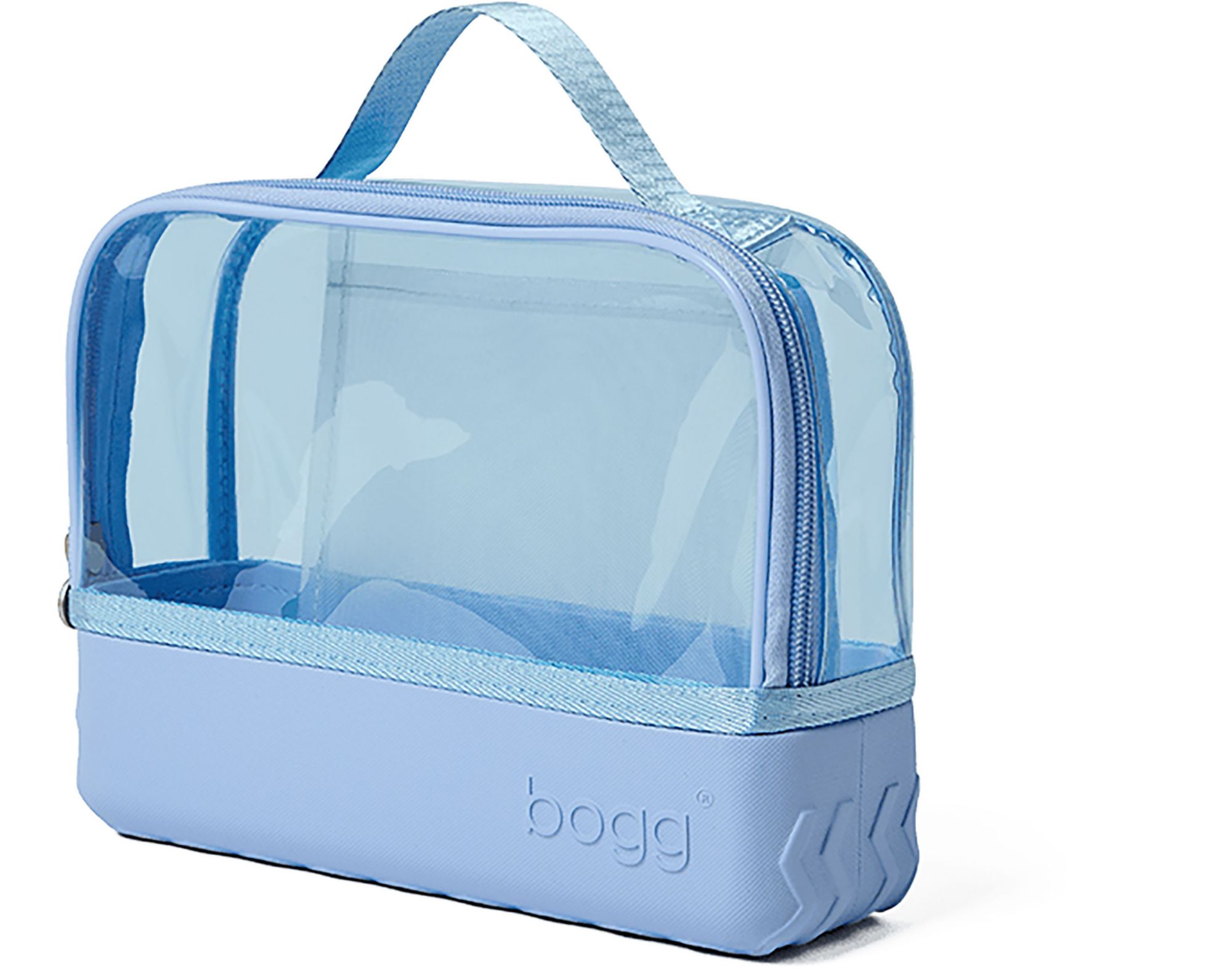 Everything you love about Bogg, now in a chic cosmetic case. Compatible with all three tote sizes, She's a Beauty! features a signature tread base for tip-proof stability on vanity tops, sink counters, and narrow shelving. Every detail of the design is carefully considered, from the transparent topper to the interior slip pocket to the U-shape zip that allows for wide, easy-open access. Finished with a top handle for grab-and-go ease, this compact case can also be used as a travel organizer or a wet bag to store bathing suits after a day at the beach.