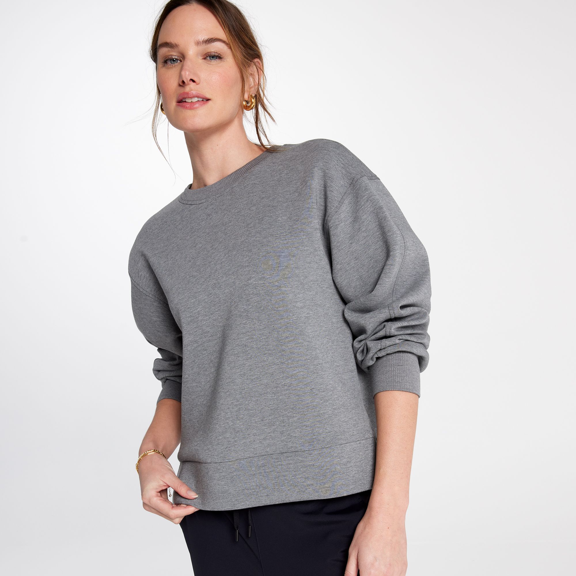 A thick, soft knit combines with a relaxed silhouette for a modern update on the crewneck sweatshirt. Pull this on over your outfit whenever you need an extra layer for unexpected conditions.