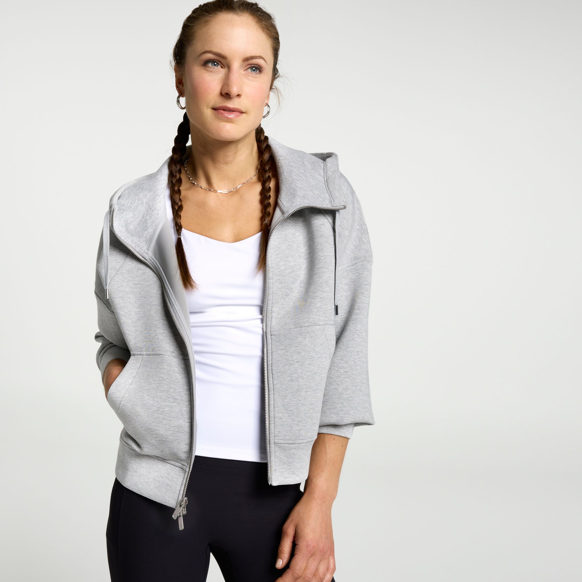 Elevate your everyday style with the CALIA Women's Soft Scuba Hooded Full Zip. Designed with silky-smooth scuba fabric, this jacket offers unparalleled comfort and a polished look for casual outings or post-workout wear. Wrinkle-resistant and effortlessly chic, it’s the perfect layer to keep up with your busy lifestyle.