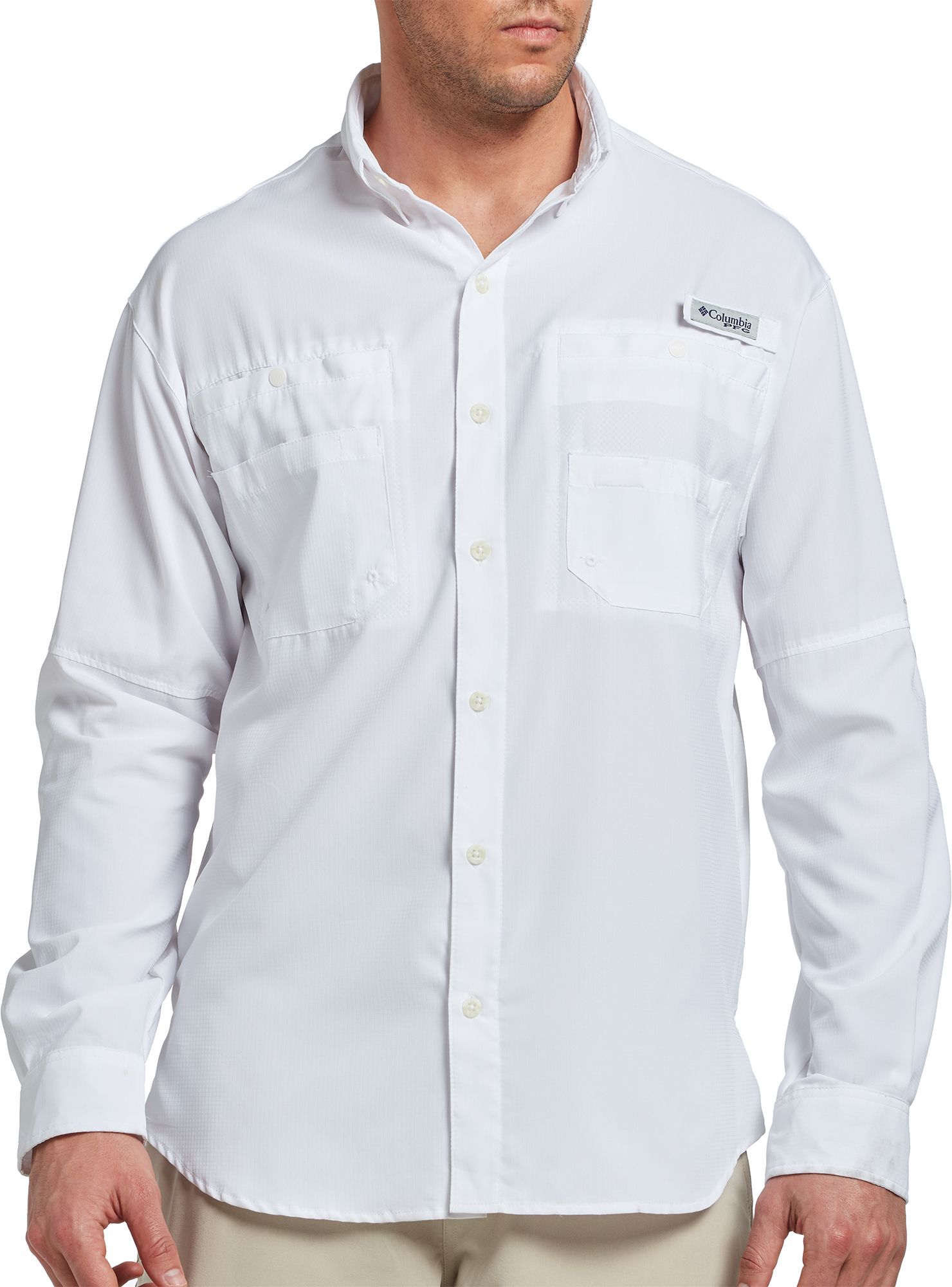 Stay cool and protected on your fishing adventures with the Columbia Men's PFG Tamiami II Long Sleeve Shirt. Designed with a modern classic fit and featuring mesh-lined venting at the back, this shirt ensures breathability and comfort. The Omni-Wick™ technology pulls moisture away from your skin, while the Omni-Shade™ UPF 40 protection shields you from the sun, making this the perfect shirt for long days out on the water.