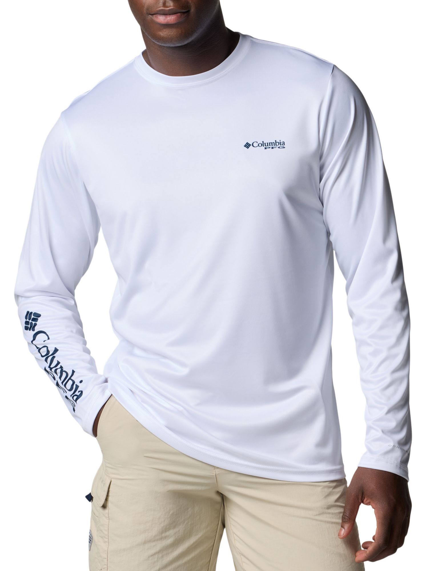 Stay protected and comfortable all day long with the Columbia Men's Terminal Tackle PFG™ Fish Shine Long Sleeve Shirt. Designed with quick-dry material and sublimation printed graphics, this shirt keeps you dry and stylish whether you're on or off the water. Featuring Omni-Shade™ UPF 50 sun protection and Omni-Wick™ technology, it's the perfect choice for any fishing adventure.