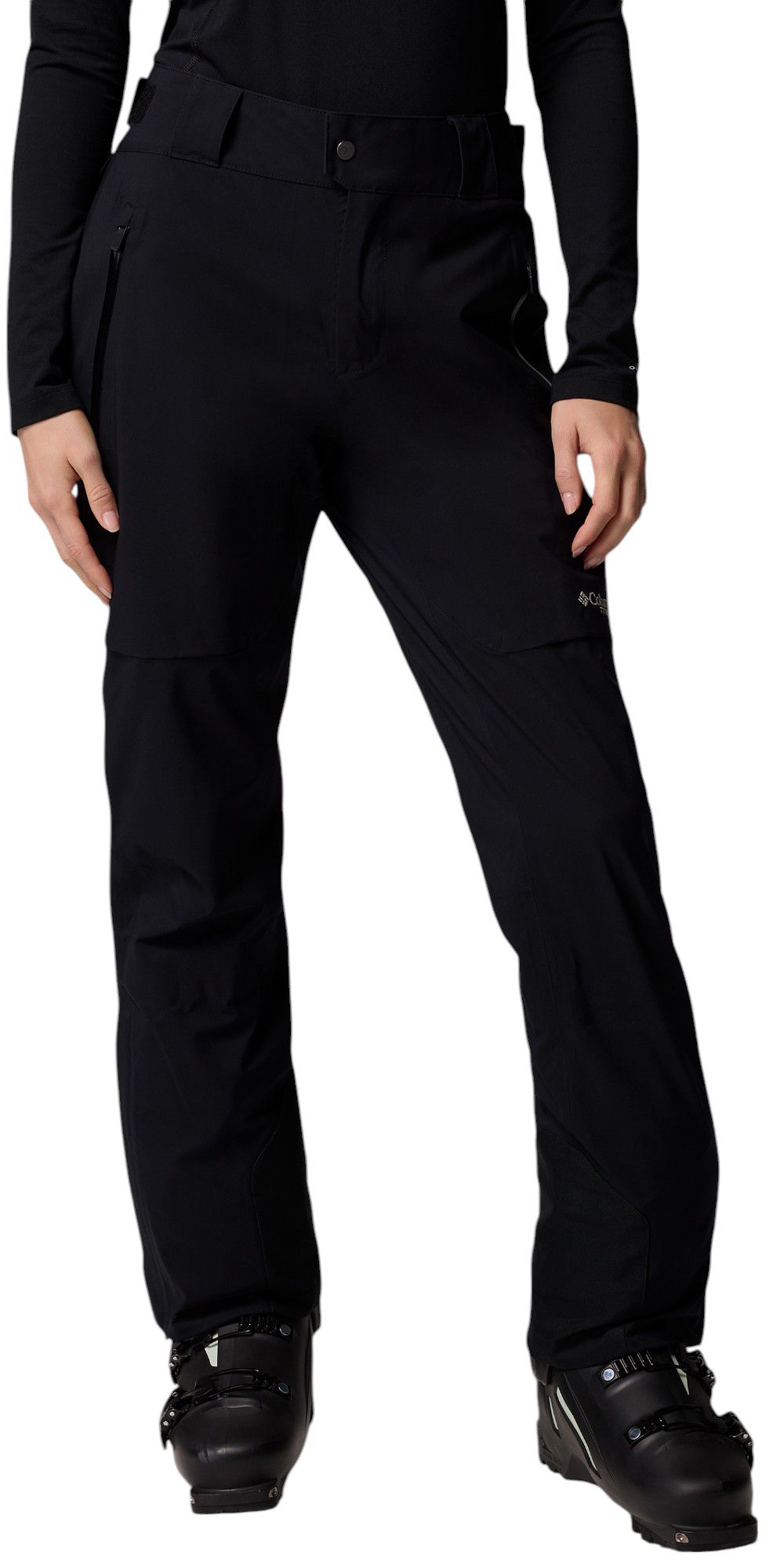 So I have a supremely difficult time finding pants of any kind. I'm short (5'3") and pear-shaped; wide hips and a big butt. When I bump into counters or chairs, I surprise myself. If you're like me, it's a particular kind of misery. And if you're like me, when you try on a pair of pants that fit you, and don't slide down giving you saggy crotch, you want every color and maybe back ups. For me, this is that pair of snow pants. These feel great, look great, and I'm so glad I got them. They're very thin, so definitely for the warmer days. The Columbia's recommended size for me was M short, but short was unavailable. I've also been duped by the auto-size recommendations, so I bought these in both M regular and L regular. The M's were tight on my butt, but the L's were comically large. Like there was no-point-in-zipping-them-huge. I'm keeping the mediums, and will continue to dream of dropping a pound. They are a bit tight in the upper leg joint area when I sit or lift my leg up, but it's not that big of a deal. I'm not rock-climbing or doing yoga in these things. I LOVE the adjustable waist, omg, what brilliance. That may sell these alone! The length is a bit long for me, but with boots on, I don't think that will matter too much. I was surprised that the elastic around the ankles was so loose, but maybe that's how they're supposed to be to fit around boots... just seemed too loose. Overall, great pants.