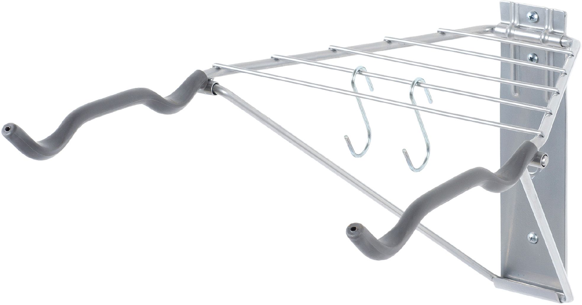 The Delta Cycle® Two Bike Wall Mount with Shelf is a functional storage solution. This shelf folds to save space and has rubber arms to protect your bike's finish.
