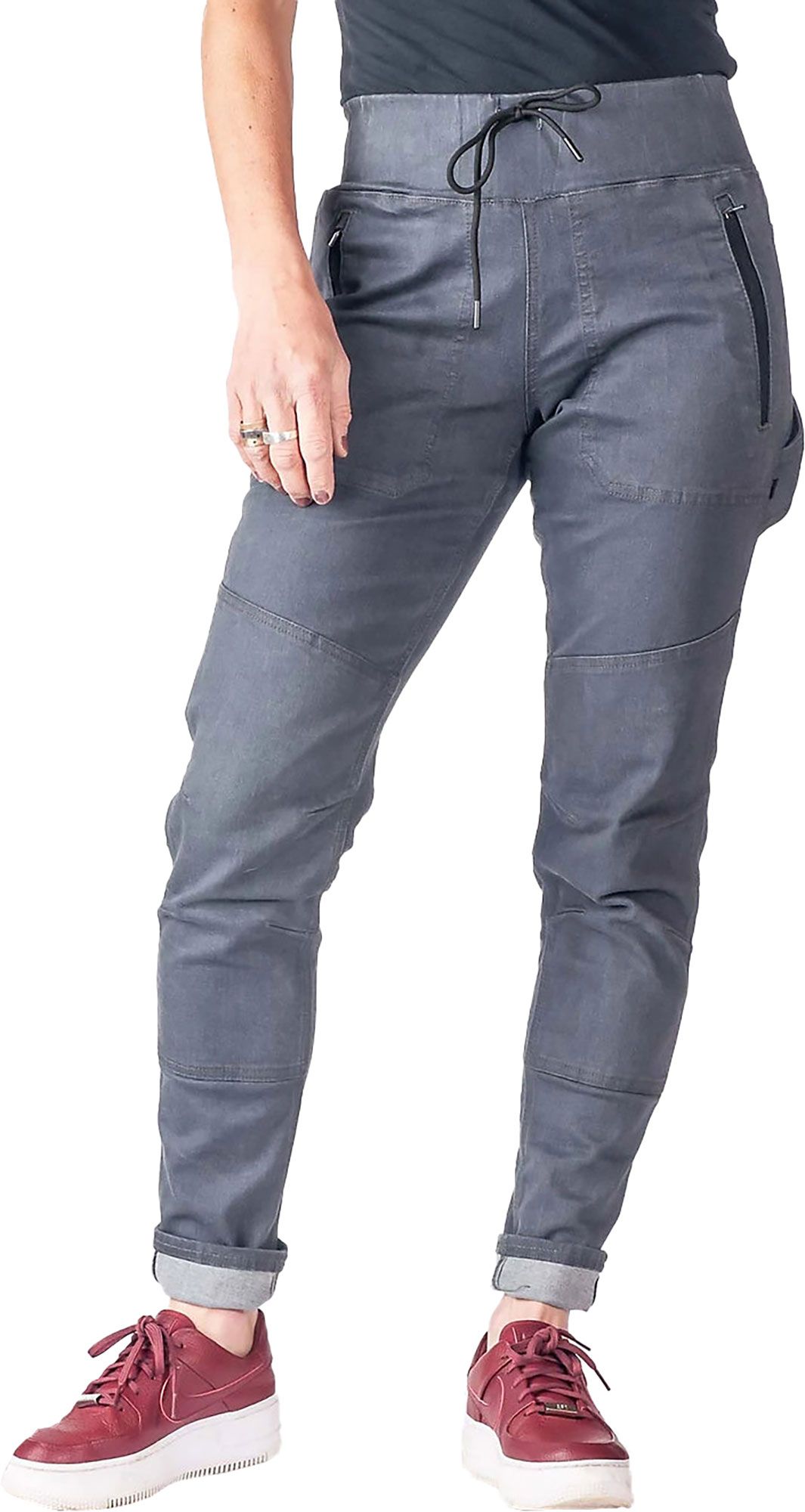 Comfy and sturdy. Zipper pockets to contain important things. Extra pockets to hold various small tools. Looooooove these pants. I now have them in every color. They need to make tan and green versions asap
