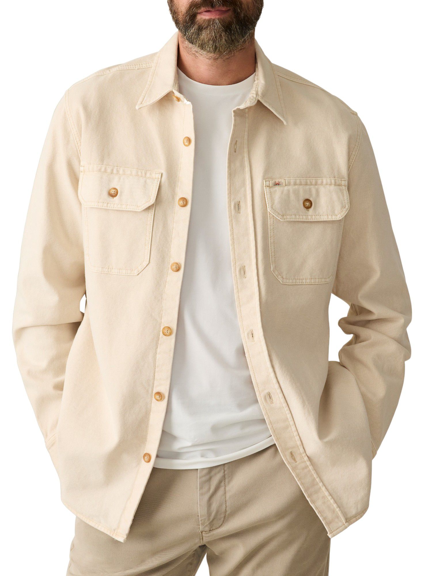 Perfectly washed with an authentic faded look, this shirt jacket is the newest addition to our Sunwashed collection. Its relaxed fit and rugged texture bring an effortlessly cool vibe to any outfit. Combining both style and practicality, you'll be throwing it on over everything this season.