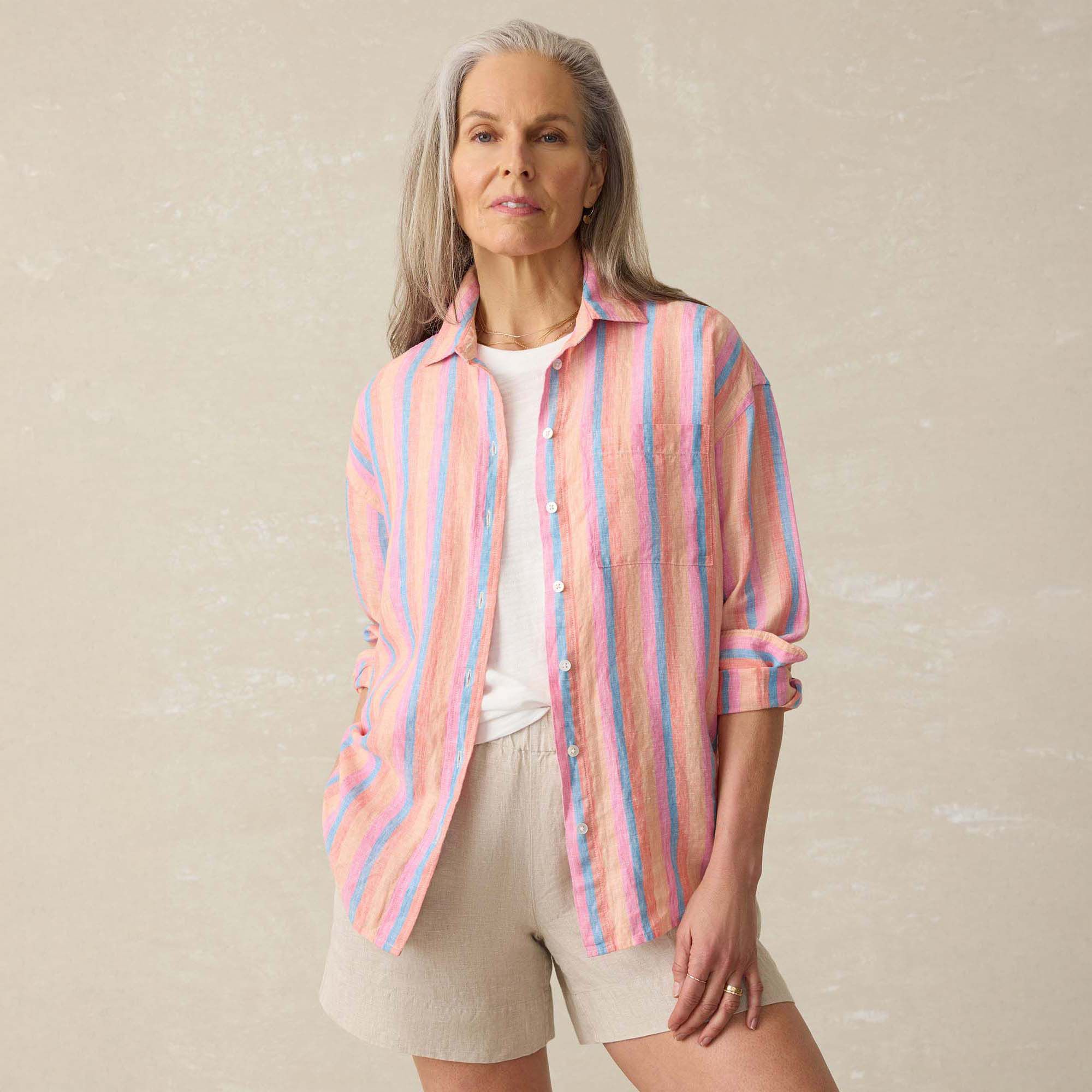 Designed by master shirtmakers with a focus on effortless style, the Laguna Linen Shirt is lightweight, breathable, and built to last. Crafted from European Flax™—a premium, GMO-free fiber grown along the coastal lands from Normandy to Amsterdam, and then given the Faherty wash, this button-down is softer, more comfortable, and ready to be lived in like no other.