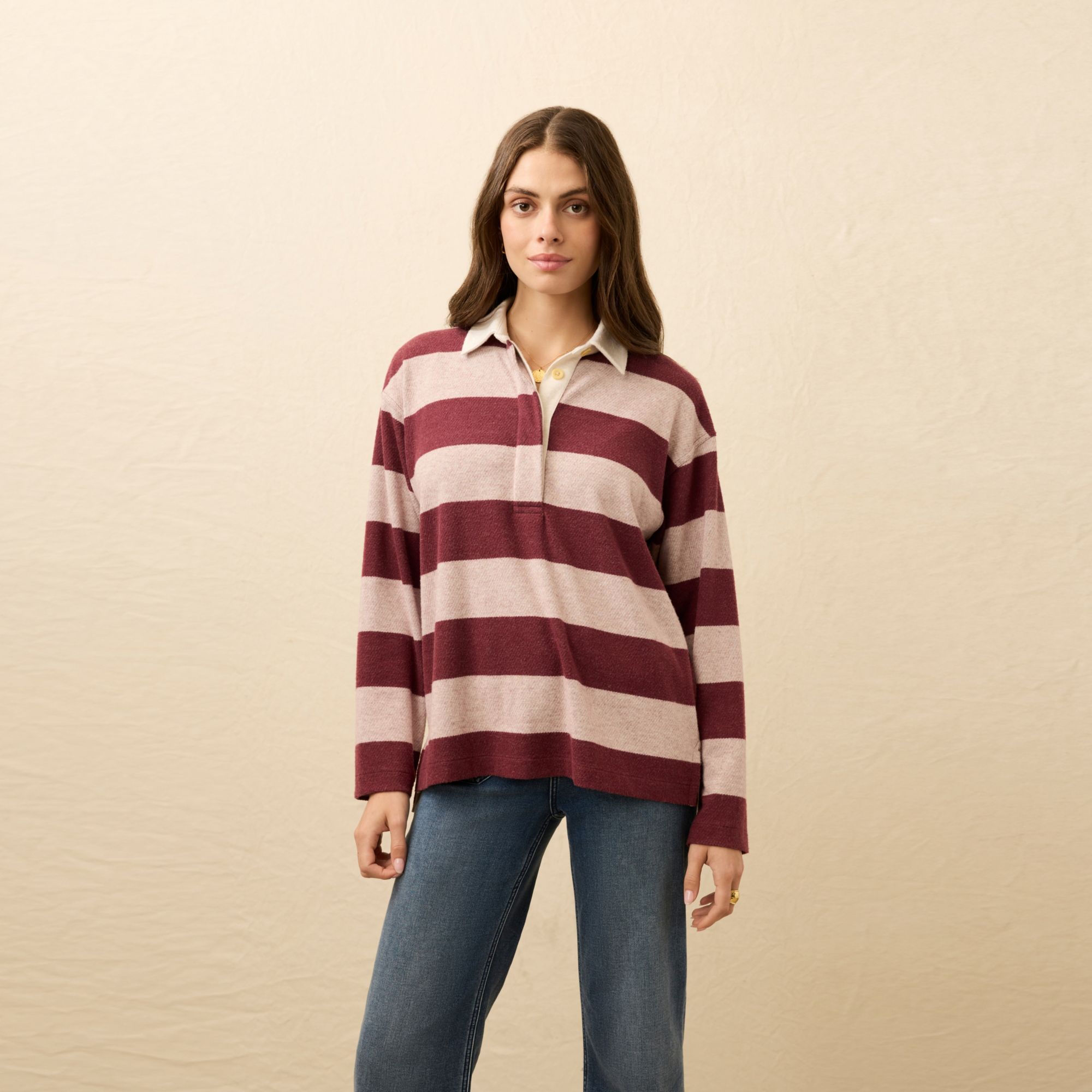 I washed the rugby shirt once before wearing. The collar became very pilly. It already looks cheap and worn out and it's brand new. I was so excited about this shirt, shopped a LOT to find a 90s rugby shirt that felt legit, but I didn't want a shirt that actually looks like it's 30 yrs old. I splurged on this one, my first time trying Faherty. I didn't wear it in public once and don't think I will with the collar looking so gross. Other than the collar, the shirt would have been great. I also ordered socks and love them. But not worth shopping from here again.