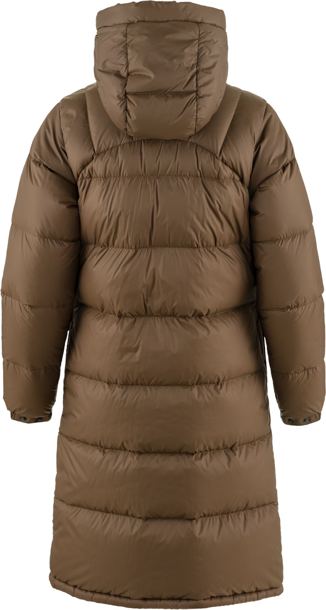 Long, well-insulated down parka for a variety of winter activities