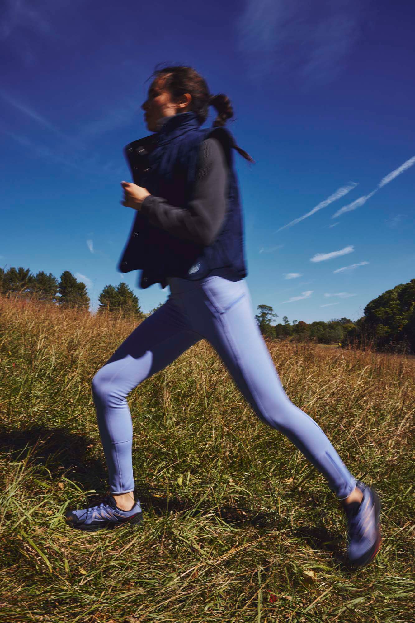 Heavyweight fleece fabric at the back of the leg keeps you warm on the run