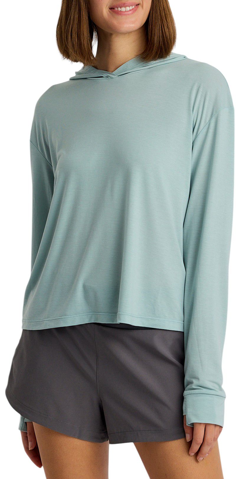 Great color and fabric. Quick to throw on and to carry when hiking. Soft and comfortable.