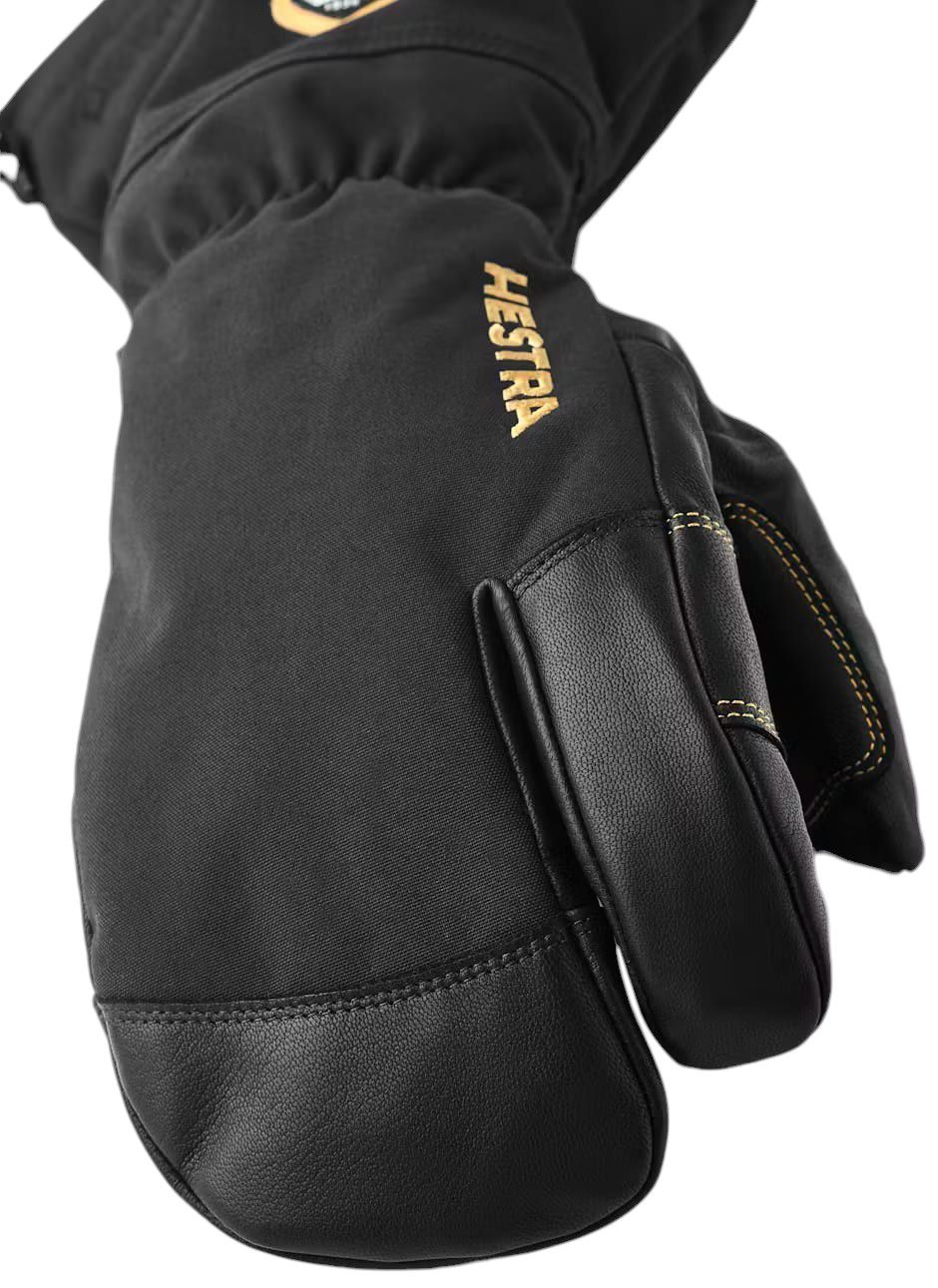 The Army Leather GORE-TEX is a warm 3-finger glove for skiing in tough weather conditions. As a 3-finger model, it offers slightly more warmth while retaining a degree of fingertip sensitivity. Sewn in hardwearing goatskin and heavy-duty recycled polyamide fabric. A fleece liner with G-Loft synthetic insulation keeps the cold out. The model comes out a favourite in tests thanks to its sound design and carefully thought-out details. A high cuff with snowlock is perfect when skiing in powder, while a wrist strap reduces the risk of losing a glove, for example on a ski lift. A reliable, practical companion on ski tours and adventures in high alpine terrain. Perfect when you're doing a lot of uphill and need a protective glove with high breathability.