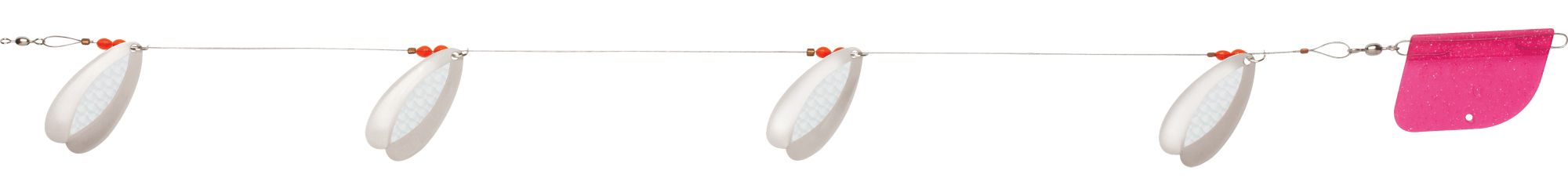 The Bolo Flex-I-Troll features four bolo blades that are designed to spin in wide circles, creating flash and vibration that calls fish in. In addition, the blades feature premium plating and polishing for extra flash, as well as an extra-light design for low drag trolling. The Luhr-Jensen® Bolo Flex-I-Troll has a flexible cable equipped with a built-in trolling rudder that eliminates spin.