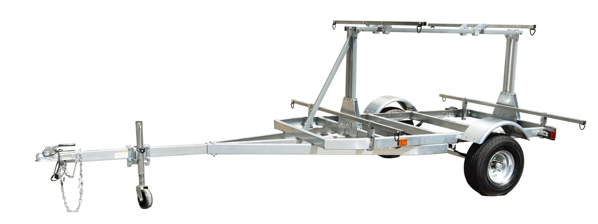 The 2nd Tier has a 150 lb. load rating and provides transport for additional gear. The 58” upper load bars provide an “easy to reach” height of 56” to access a cargo box, extra boat, or pair of bikes. This trailer has a load rating of 1000 lbs. and is DOT and Transport Canada certified. Fully illustrated instructions allow assembly in approximately four to five hours with standard tools. Five Year Warranty. Made in USA.
