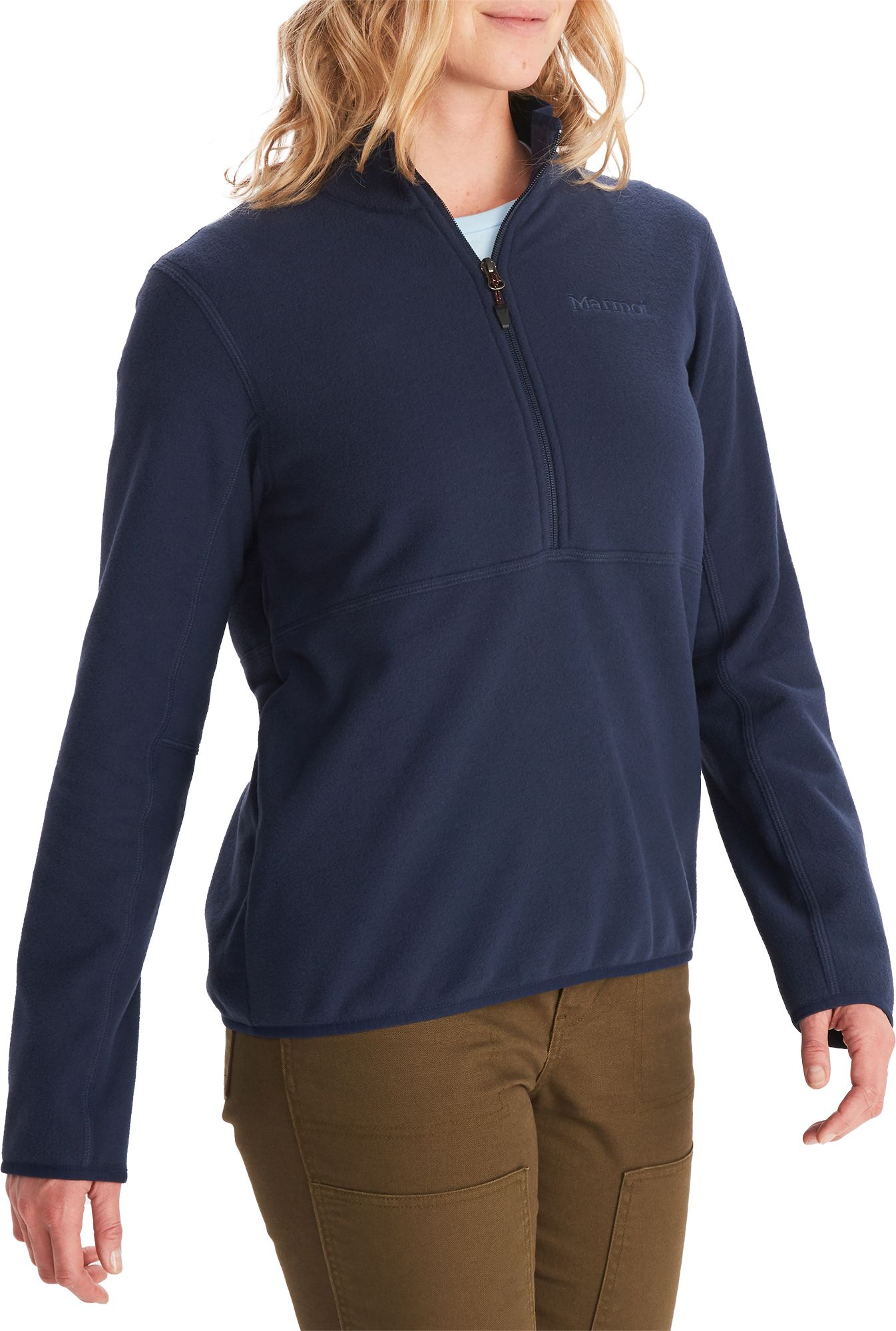 The shape of this is really nice kind of fitted but still very roomy. The material is also very comfortable and feels solid for a fleece. I bought the dark blue which is a perfect navy blue. They are hard to find.