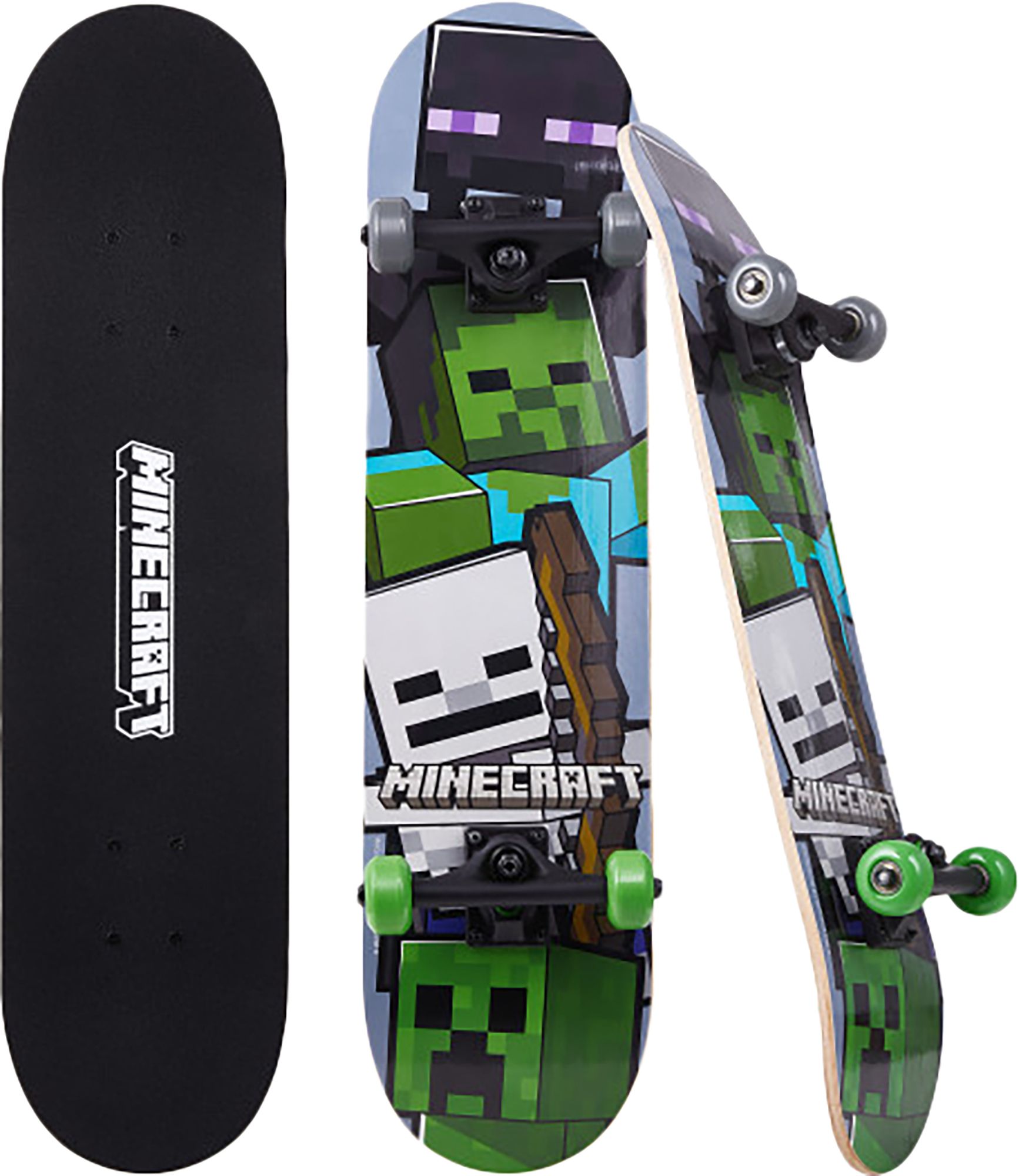 The Minecraft Skateboard gives you the ultimate skateboard deck with pro trucks and wheels for any aspiring skater! The durable skateboard decks ensure your kids skateboard can take a little abuse at the skate ramp, and the sleek traditional design makes them much more versatile than standard cruiser skateboards. Whether you’re looking for a high-quality boys and girls skateboard for beginners or an awesome new board for your experienced skater, this skateboard has you covered!