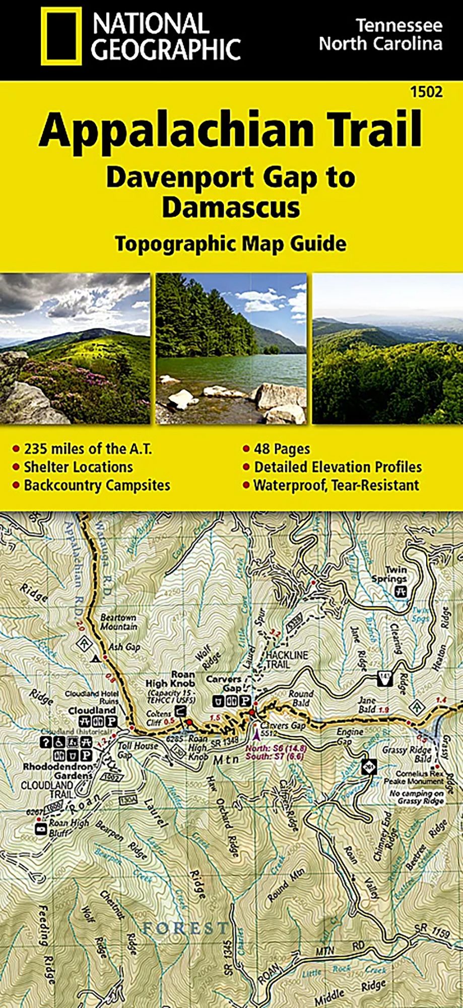 The Davenport Gap to Damascus Topographic Map Guide makes a perfect traveling companion when traversing the northeastern Tennessee and western North Carolina section of the Appalachian Trail (A.T.). The A.T. in northeastern Tennessee and western North Carolina mostly follows a high, crooked ridgeline across the Southern Appalachians, an area that is known for both its natural beauty and rich history. This mountainous section of trail, which is mostly contained within the Cherokee and Pisgah National Forests, travels across the uplands of the Tennessee Valley, through the scenic Roan Highlands, and along the high ridge that separates Tennessee and North Carolina, deep in the heart of the Appalachian Mountain Range.Each A.T. Topographic Map Guide includes detailed topographic maps at a detail of 1 inch = 1 mile. Each page is centered on the A.T. and overlaps with the adjacent pages so there is little chance of getting lost. Along the bottom of each page is a trail profile that shows the distance between shelters, camping areas, and trail access points. The map and trail profile provide a step-by-step visual guide to hiking the trail, mile by rugged mile. The Topographic Map Guide is built for all levels of hiking enthusiasts, from the day tripper to the multi month 'thru-hiker'. The front pages of the printed Topographic Map Guide include resupply information, town inset maps, camping options, and much more.