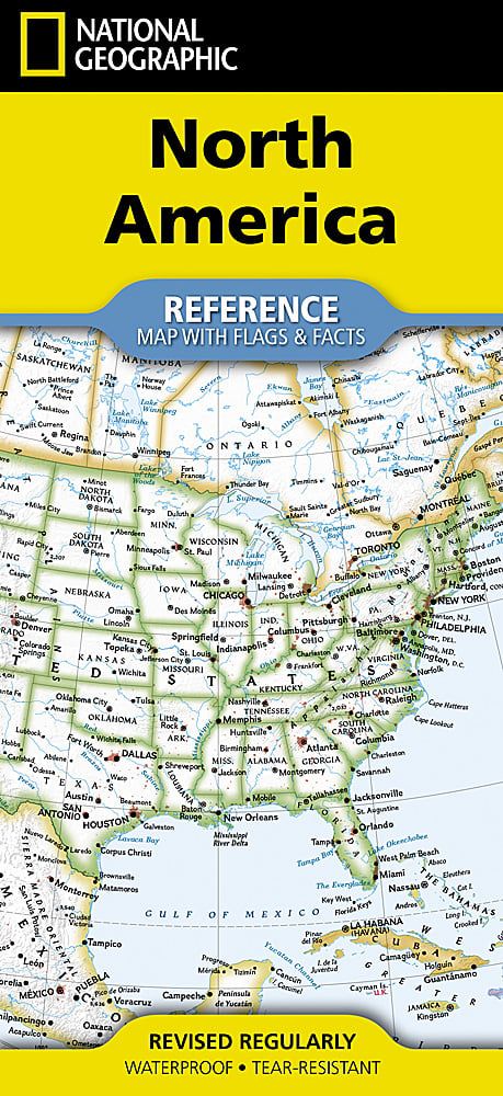 Expertly researched and designed, National Geographic's North America Flags & Facts Map is the authoritative map of North America by which other reference maps are measured. The map side includeds a political map showing countries, cities and other landmarks and a physical map shows the landforms such as mountain ranges and rivers.