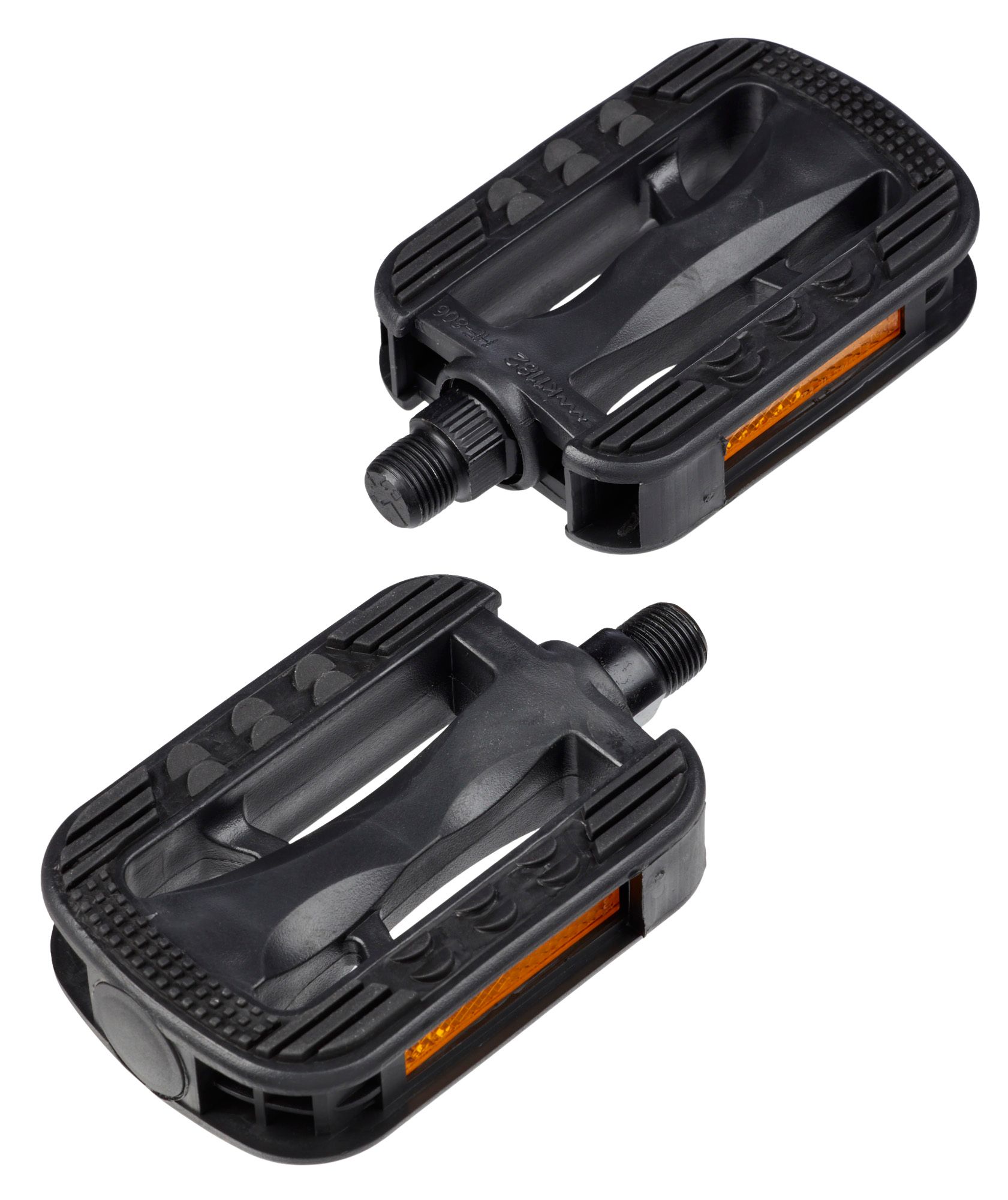 Enhance your cycling experience with the Nishiki Hybrid Bike Pedals. Featuring a large rubber grip pad, these pedals ensure that your foot stays securely in place while you ride, providing stability and comfort even on the toughest terrains. Perfect for both casual and serious cyclists.