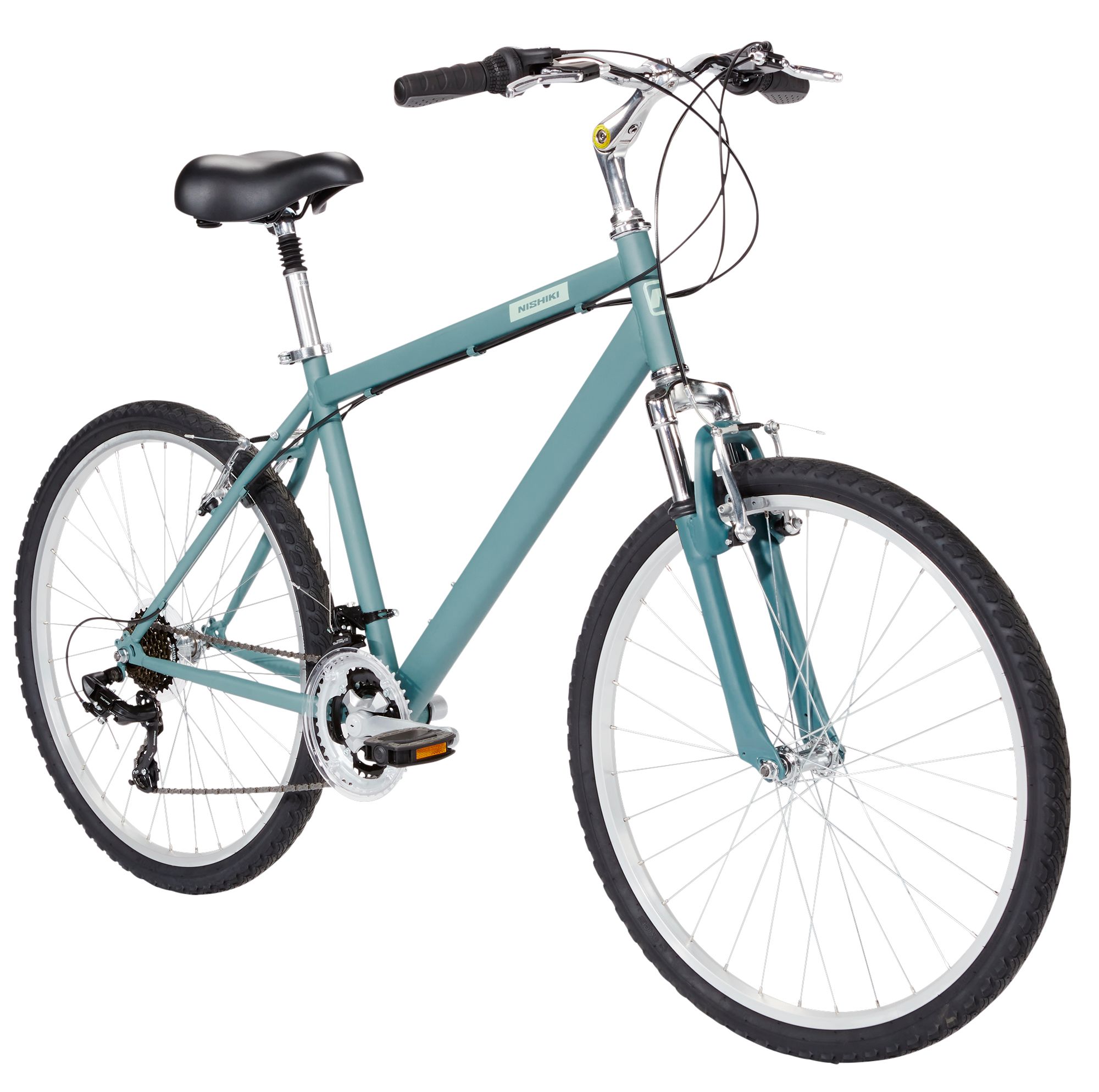 Ideal for a casual and relaxed ride around the block, choose the Nishiki® Men's Tamarack Comfort Bike. The rigid Hi-Ten steel frame and 60mm travel fork provide optimum smoothness and reliability. Sit upright comfortably on the gel comfort saddle and hang on tightly to the soft triple density grips as you glide along to class.