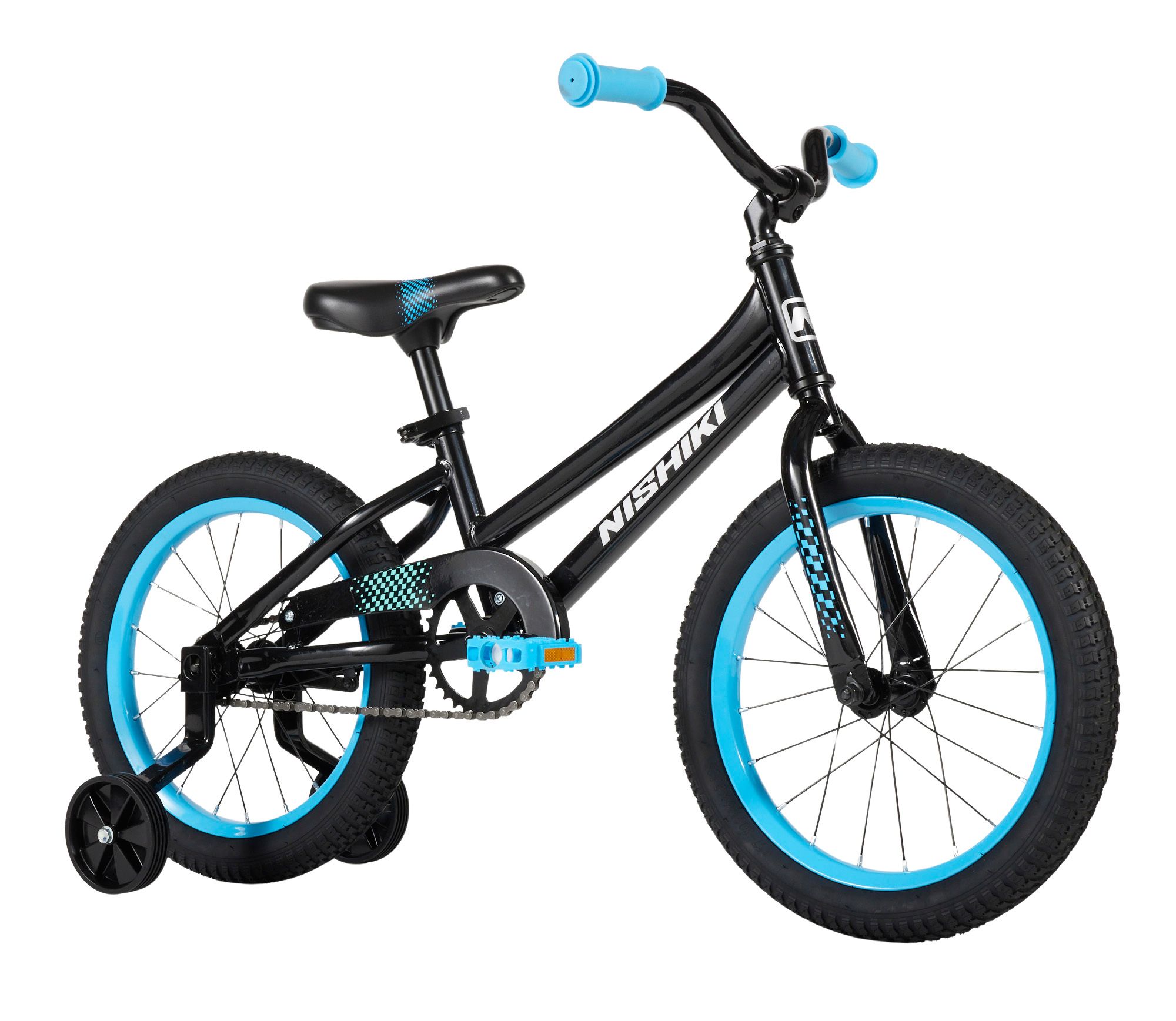 This 16" youth bike is perfect for young riders aged 3 and up. It features a lightweight, durable steel frame, 16” rubber wheels for a smooth ride, tool-free training wheels/pedals, and an adjustable seat to grow with your child. Bright Nishiki decals add a fun finishing touch.