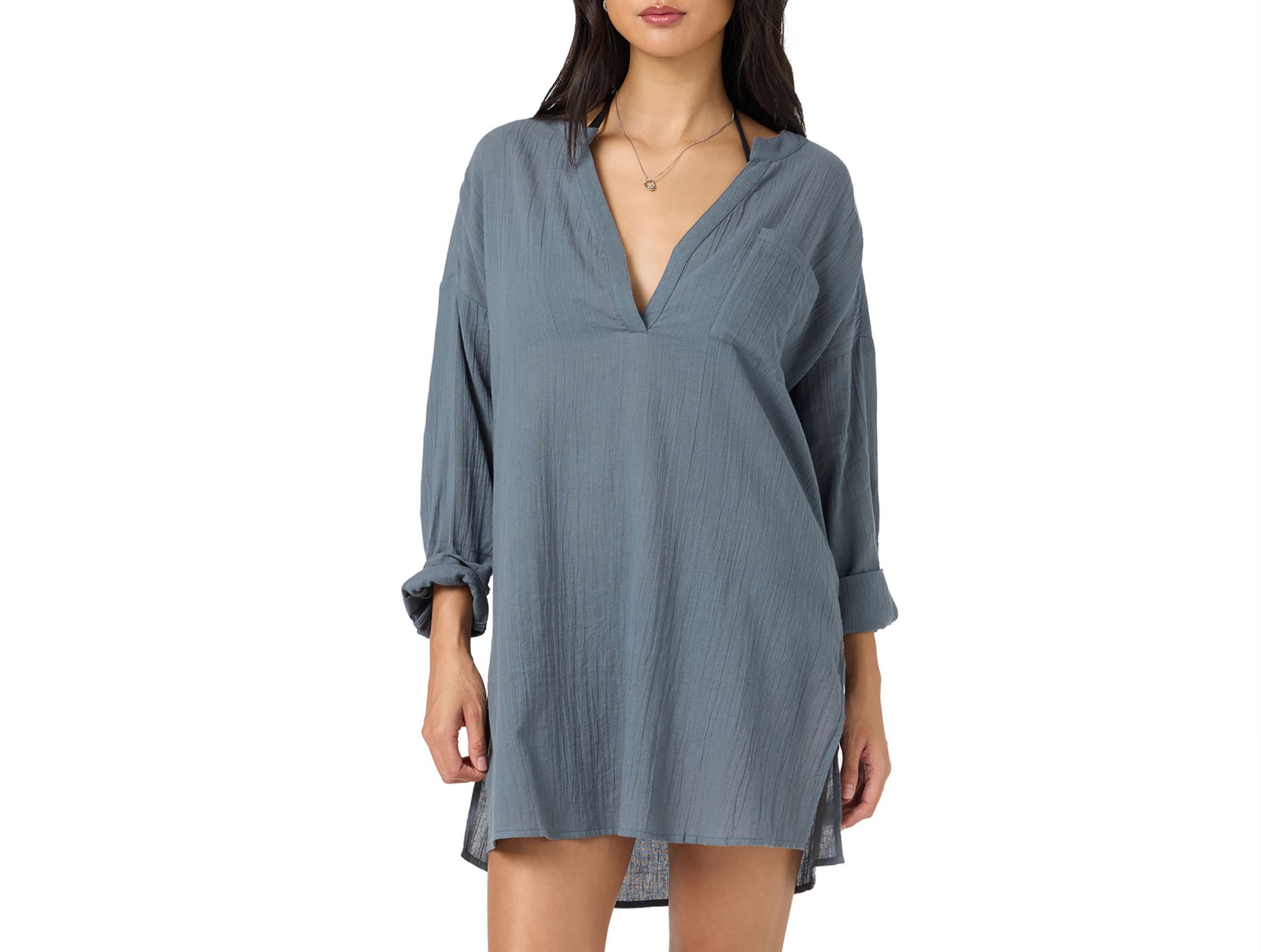 Solid woven long sleeve cover-up tunic