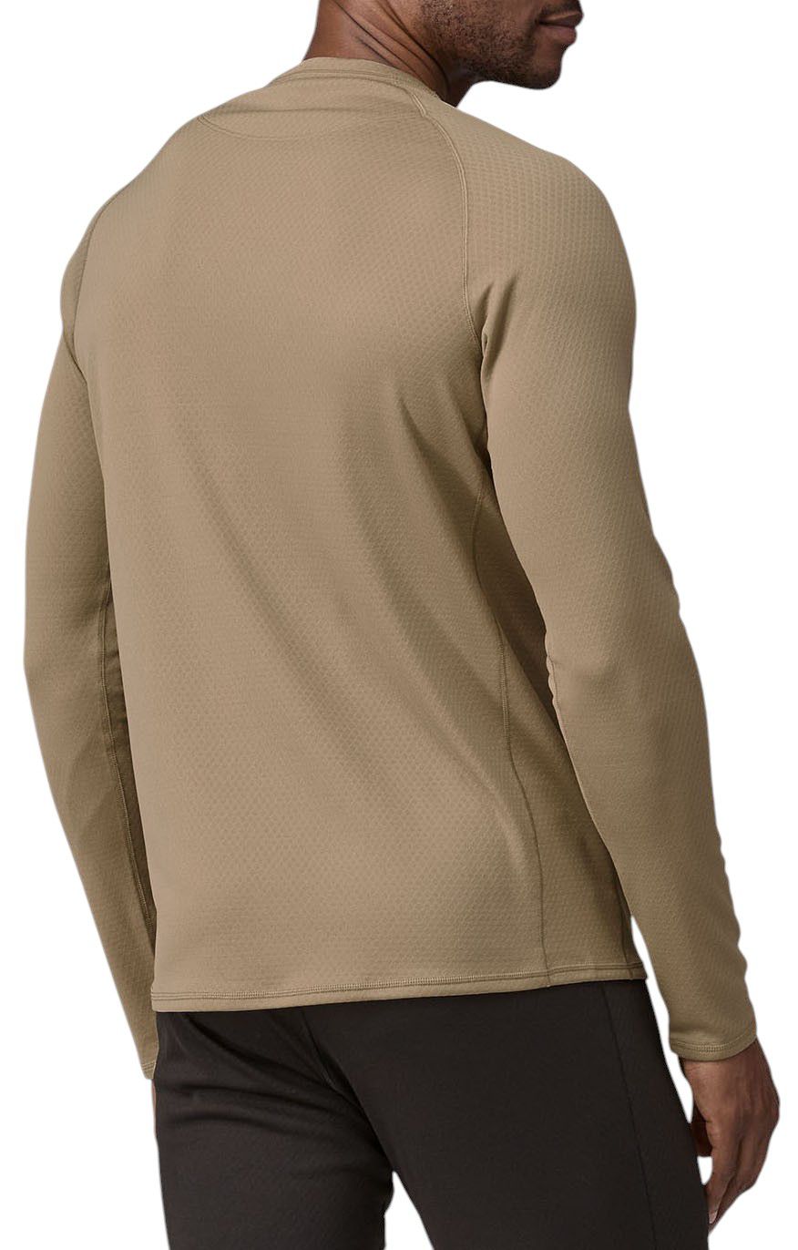 The Patagonia men's capilene midweight crew is the perfect base layer. It is soft and comfortable. It's warm when you want it to be, but comfortable indoors. The weave keeps it from feeling clammy or sticky. Highly recommended.