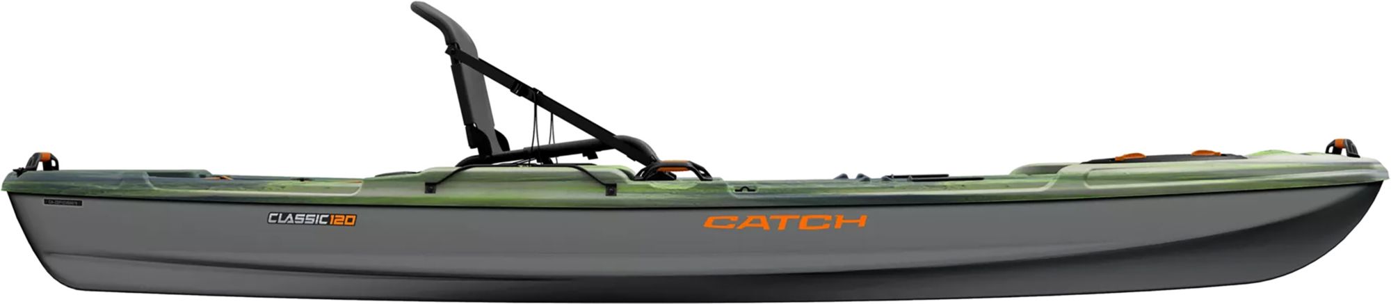 The Catch Classic 120 fishing kayak is designed for the more serious angler looking for versatility and comfort.The Catch Classic 120 fishing kayak is designed for the more serious angler looking for versatility and comfort. Built on a tunnel hull, it offers great manoeuvrability and a wide, flat deck platform with a large standing area and room for fishing gear. It features adjustable footrests, an Ergocast G2™ seating system, a quick-lock hatch, and a storage platform with bungee cords to secure your gear. Made with our patented Ram-X™ premium material, this sit-on-top kayak will support you through many years of fun fishing adventures