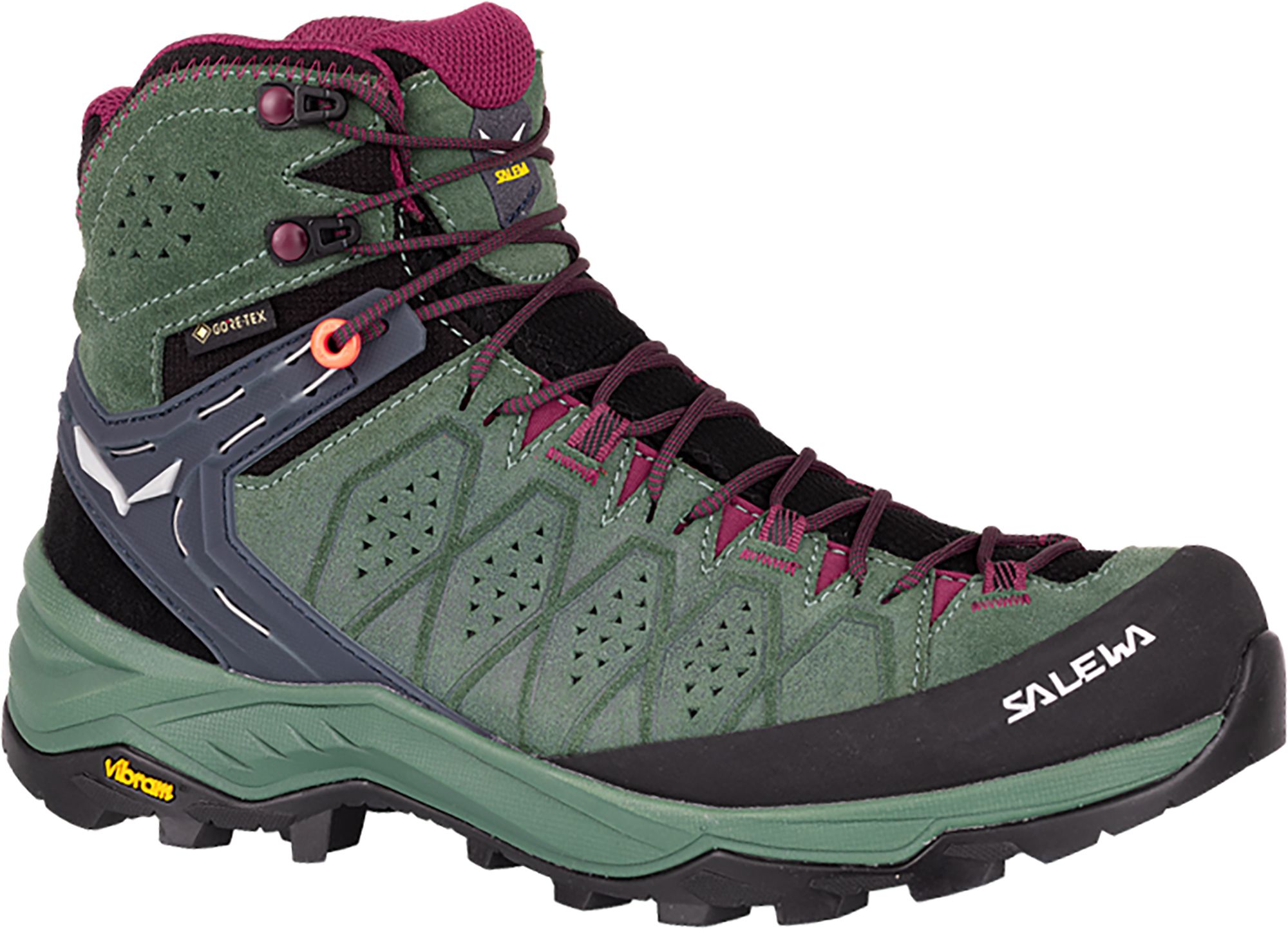 Vibram® Alpine Hiking outsole provides enhanced performance and control in a wide range of mountain terrain and also excels in wet and muddy conditions thanks to its dedicated climbing, traction and braking zones and the aggressive lug pattern