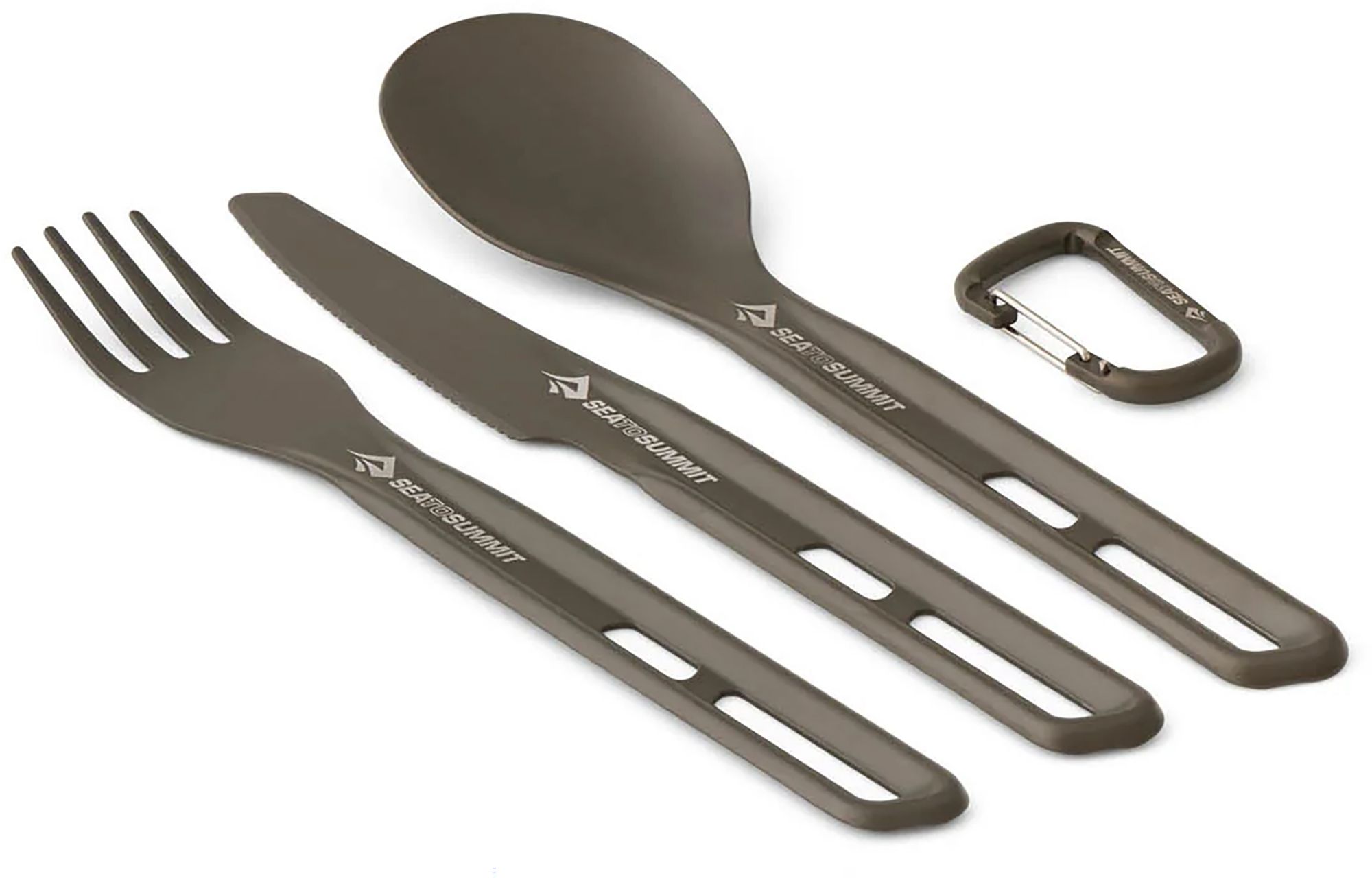 Light-but-strong knife, fork and spoon made of hard-anodized aircraft-grade aluminium