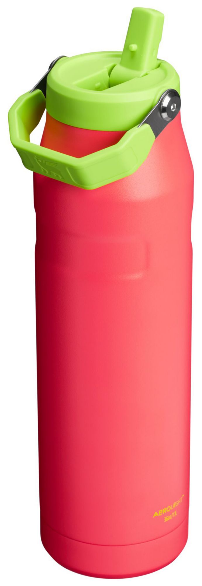 Next level hydration. The 36 oz. IceFlow Flip Straw 2.0 Bottle has premium AeroLight™ technology that makes it 33% lighter than standard stainless-steel bottles. Featherweight spun-steel insulation keeps your water ice-cold for hours. The folding handle makes this the perfect grab and go for a hot yoga class. The Flip Straw 2.0 lid has a larger drink opening and a built-in straw, so you can hydrate faster. Flip to sip, snap it shut and slip the bottle into your bag. You can even pop off the new spout for a deeper clean.