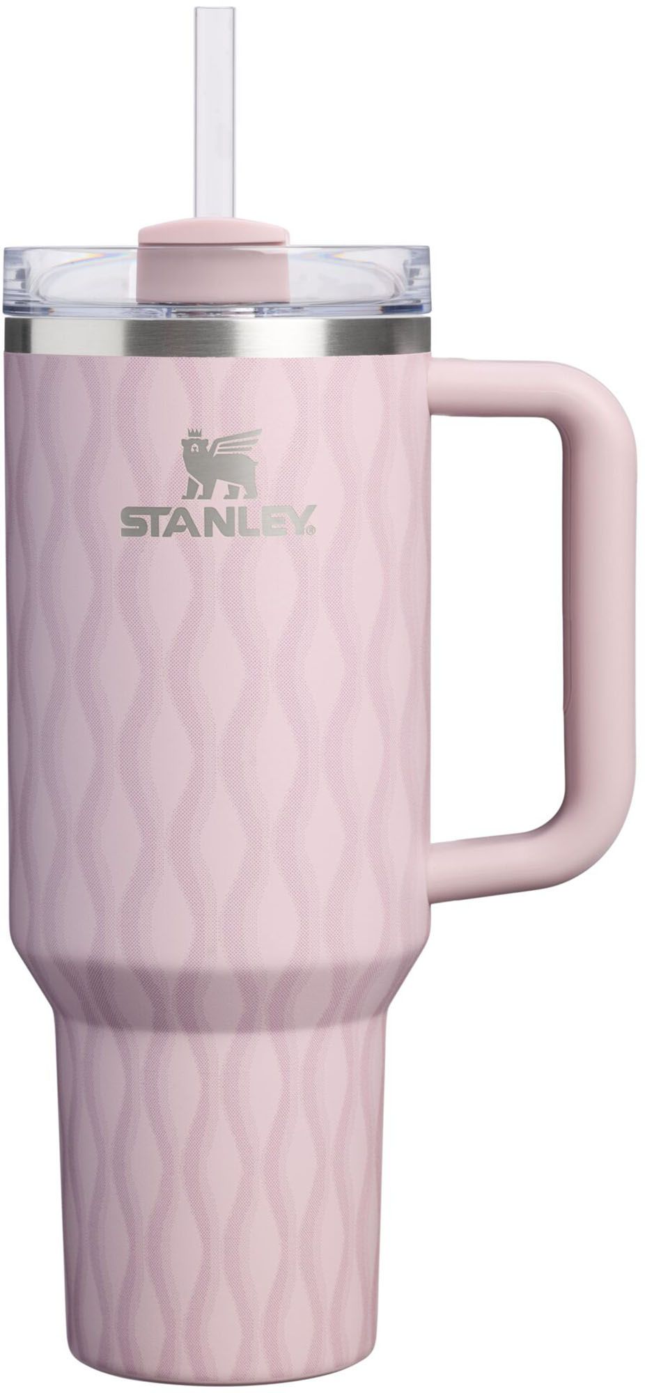 Constructed of recycled stainless steel for sustainable sipping, the Stanley® 40 oz. Quencher H2.0 offers maximum hydration with fewer refills. Commuting, studio workouts, day trips or your front porch—you’ll want this tumbler by your side. Thanks to Stanley’s vacuum insulation, your water will stay ice-cold, hour after hour. The advanced FlowState™ lid features a rotating cover with three positions: a straw opening designed to resist splashes while holding the reusable straw in place, a drink opening, and a full-cover top. The ergonomic handle includes comfort-grip inserts for easy carrying, and the narrow base fits just about any car cup holder.