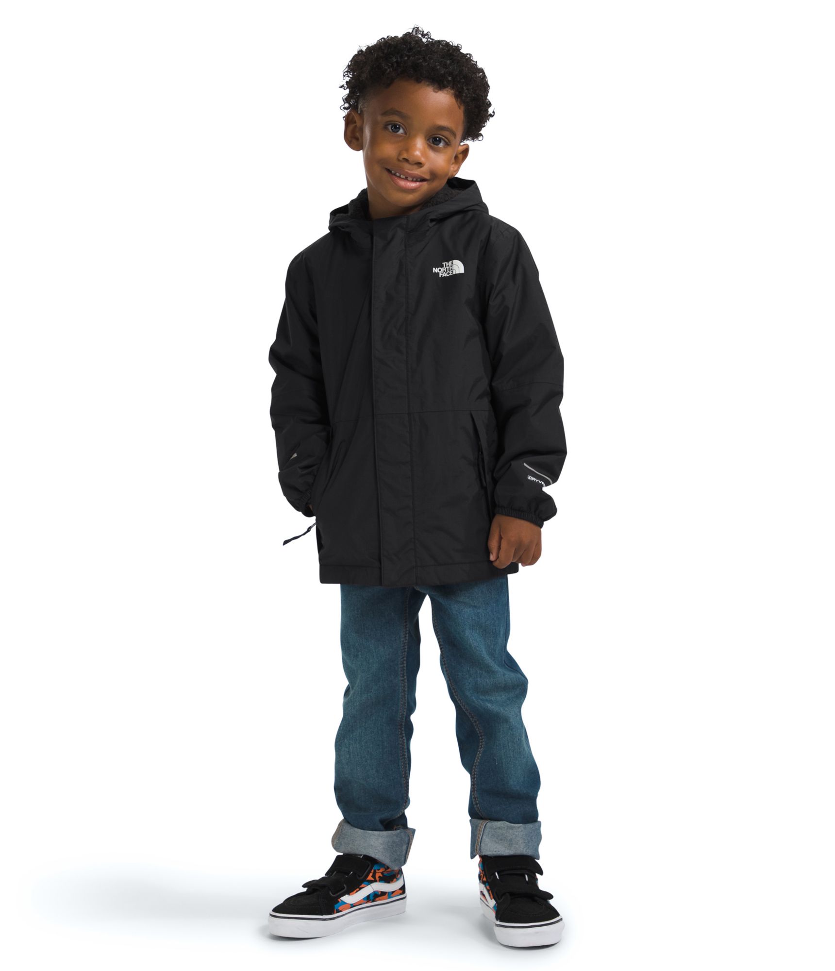 Waterproof, breathable, seam-sealed DryVent™ 2L shell with a non-PFC DWR finish helps keep them dry