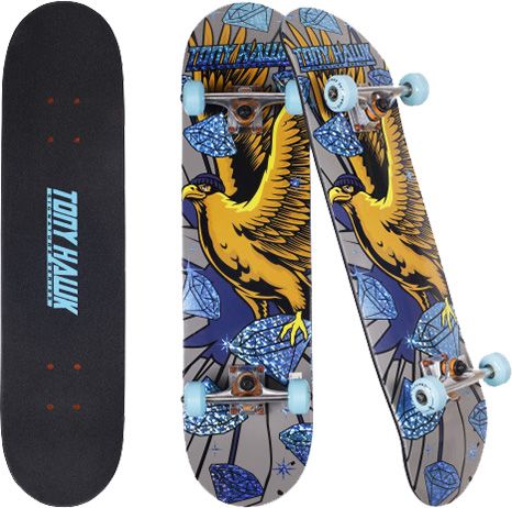 Tony Hawk Signature Series: The skateboard is suitable for all skill levels and part of the Tony Hawk Signature Skateboard Series. The skateboard provides just the right fit for Cruising, Carving, Free-Style, Downhill, and more while staying stylish the super cool metallic graphics; it's designed with aluminum alloy trucks to offer more control and stability when riding