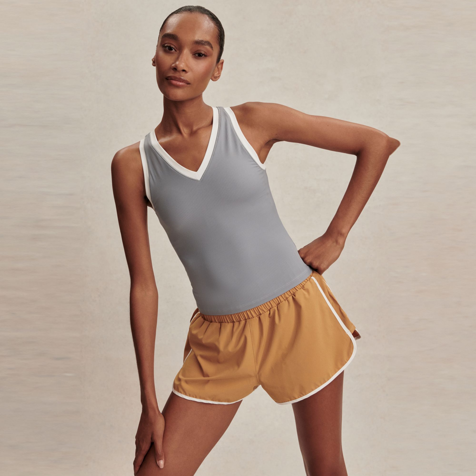 Made from a soft ribbed jersey the Chia tank has a statement V-neck highlighted further by its contrasting trim and is the perfect partner for light jogs or long walks.