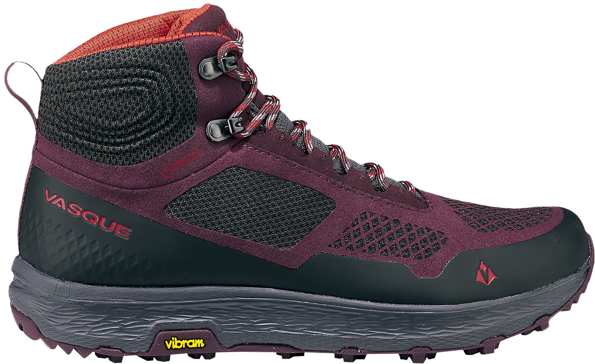 Vasque Exclusive Vibram® Ground Control LiteBase outsole with Megagrip Compound provides a superior, lightweight grip for you while hiking on tough terrain