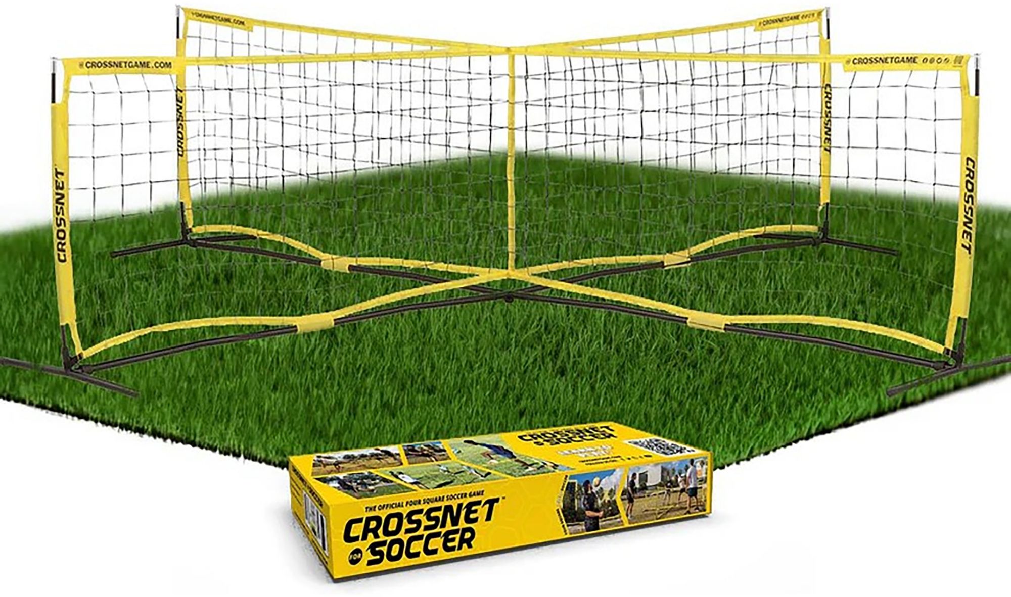 Kick backyard fun into high gear with CROSSNET Soccer, the world’s first four square game for soccer lovers. This exciting twist on a playground classic challenges players to use their feet, chest, and head to keep the ball in play while competing across four connected squares. Perfect for parks, fields, and backyards, the game is quick to set up, easy to learn, and endlessly competitive. Designed for players of all ages and skill levels, it delivers an engaging soccer experience that combines skill, strategy, and fast-paced action.