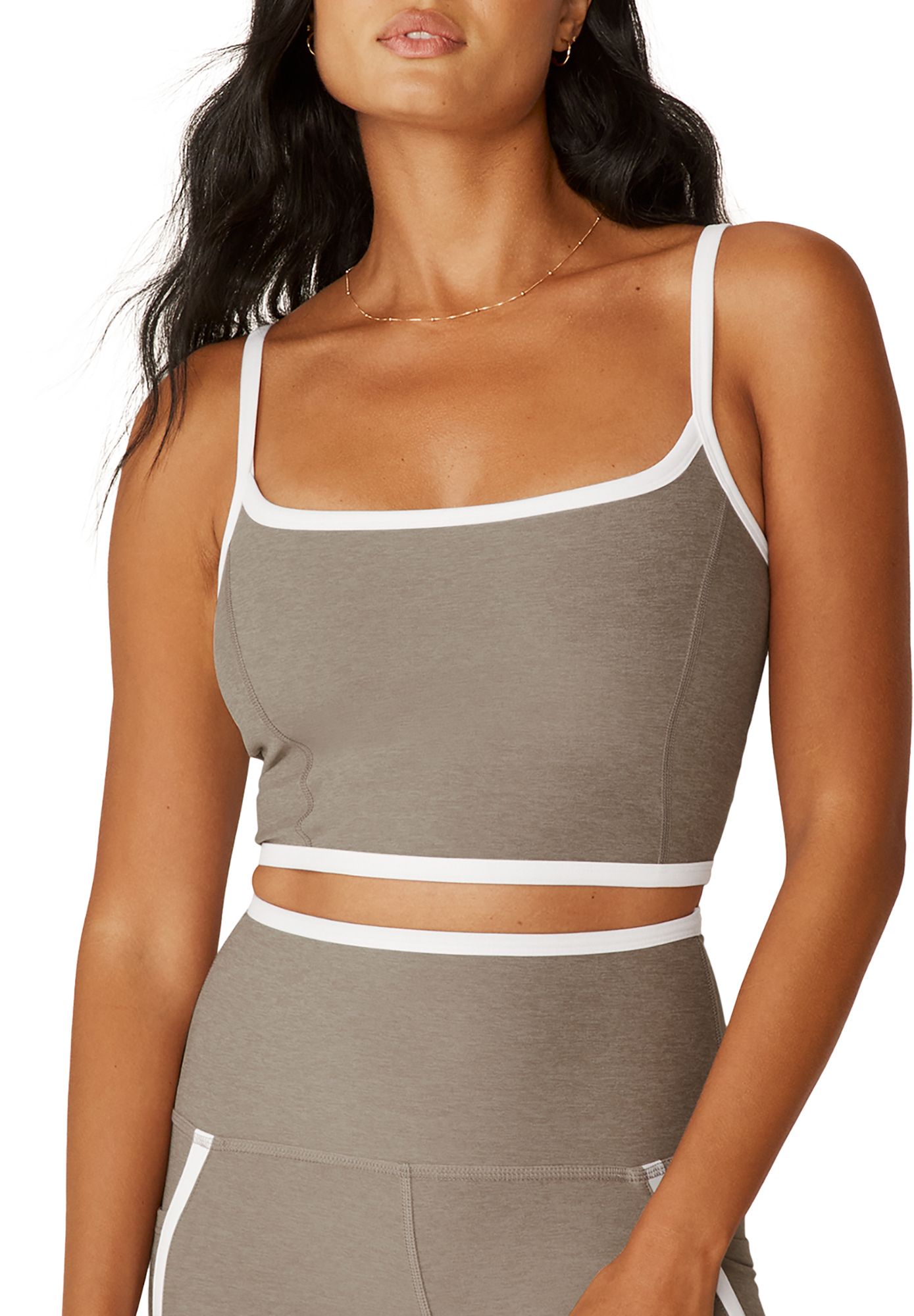 I love the fabric of all of my beyond yoga pieces EXCEPT for the straps! The straps on all of my tops always curl, twist and are uncomfortable. I think they are made far too thin.